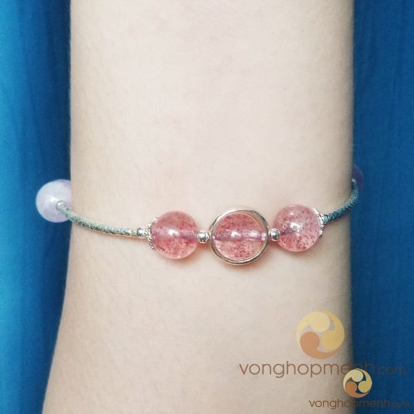 Vòng tay TAB2724 là sự kết hợp của 2 viên đá quý họ nhà Thạch Anh: Đá Thạch Anh Dâu Tây Hồng & Đá Thạch Anh Tím