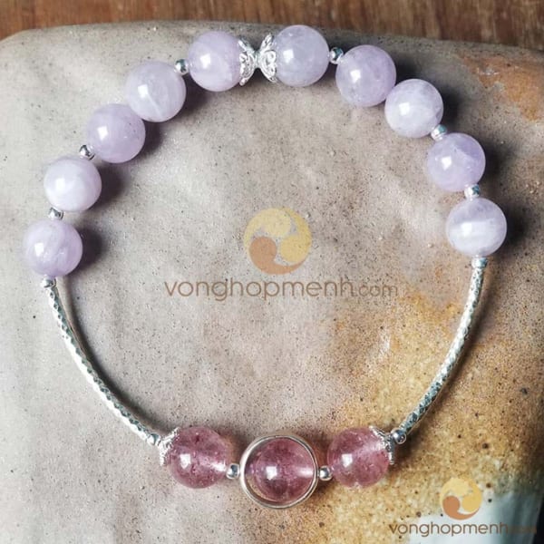 Vòng tay TAB2724 là sự kết hợp của 2 viên đá quý họ nhà Thạch Anh: Đá Thạch Anh Dâu Tây Hồng & Đá Thạch Anh Tím
